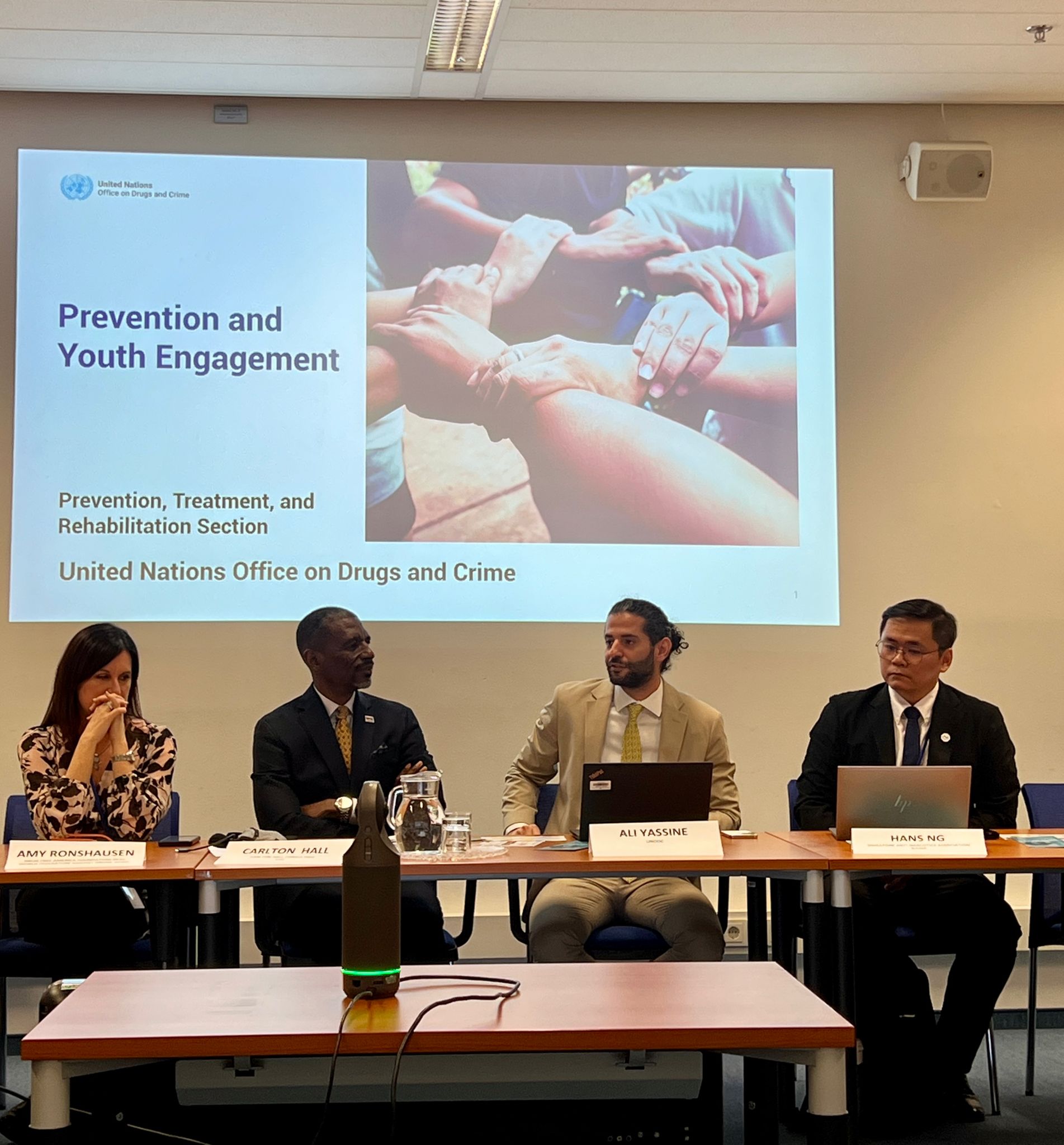 “الوقاية والتعليم الموجهان للشباب” كان عنوان الفعالية الجانبية في الدورة 68 من لجنة المخدرات في مكتب الأمم المتحدة المعني بالمخدرات والجريمة (UNODC) في فيينا، النمسا، التي نظمتها جمعية نسروتو الأناشيد.*